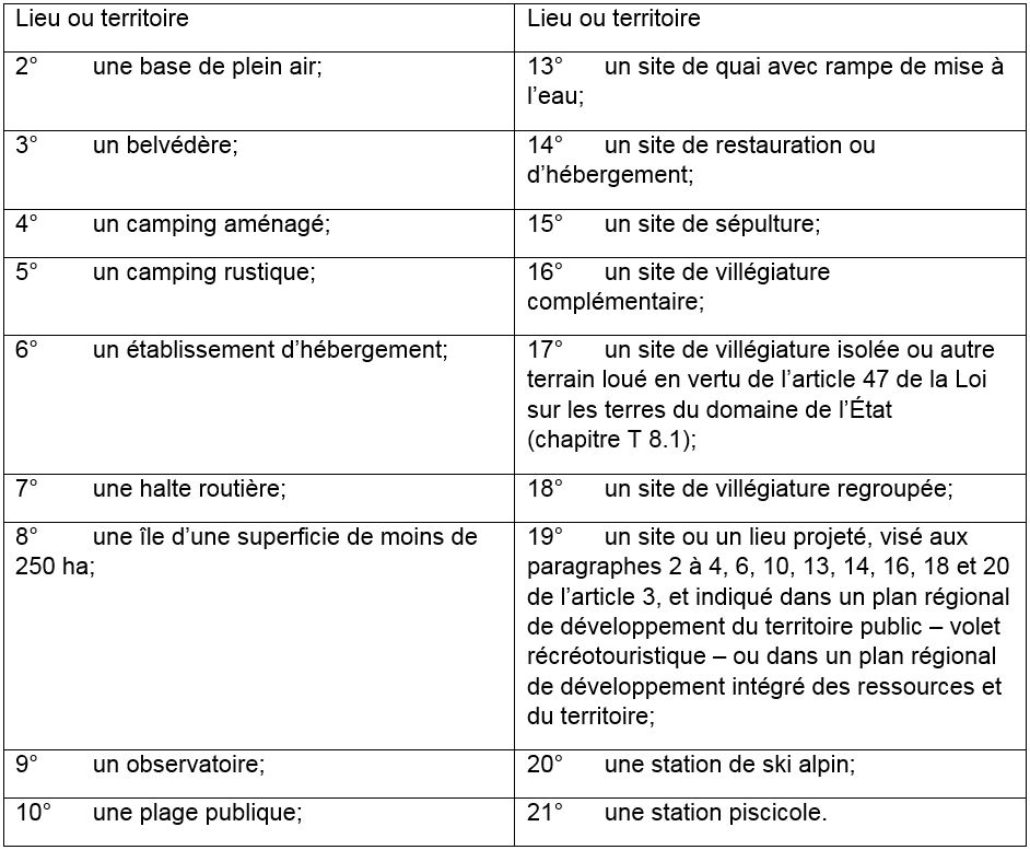 De plus, une personne qui détient un permis d’intervention peut effectuer les activités d’aménagement forestier requises lors de travaux d’utilité publique sur les lieux et territoires indiqués dans les paragraphes 2 à 11 et 13 à 21 du premier alinéa de l’article 3. Ces lieux et territoires sont les suivants :