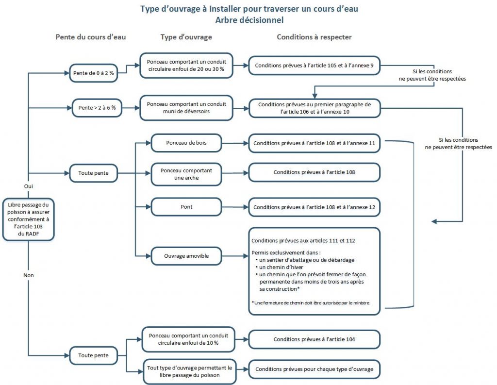 L’arbre décisionnel ci-dessous aide à déterminer le type d’ouvrage à installer pour traverser un cours d’eau.