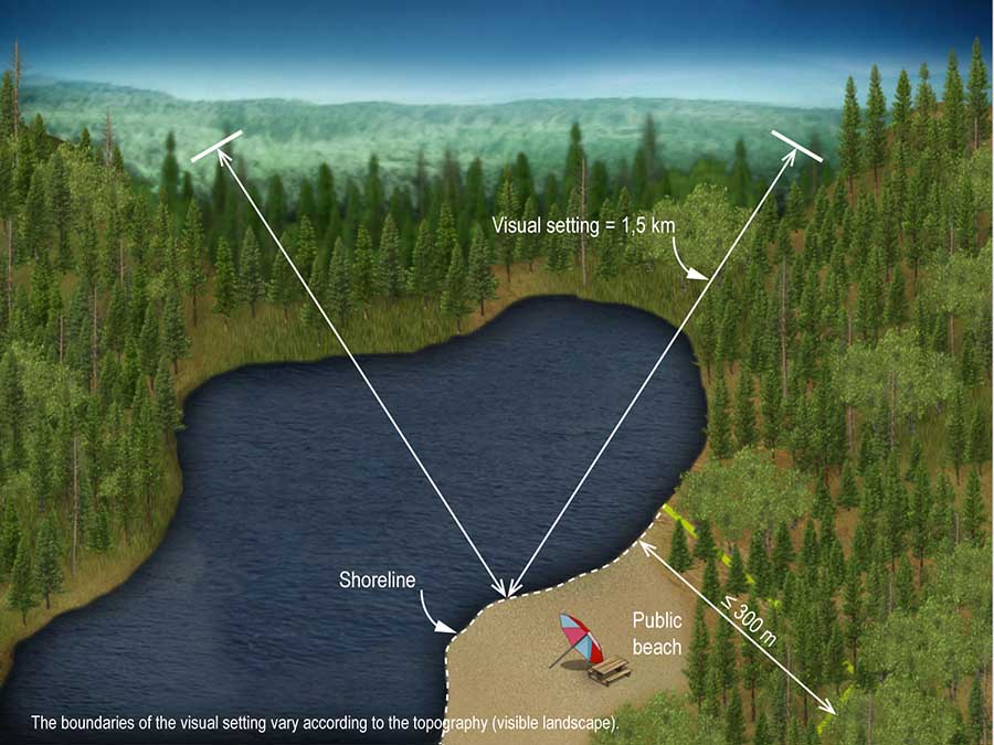 A visual setting of 1.5 km must be preserved along tourist circuits or routes and around the following places and territories: