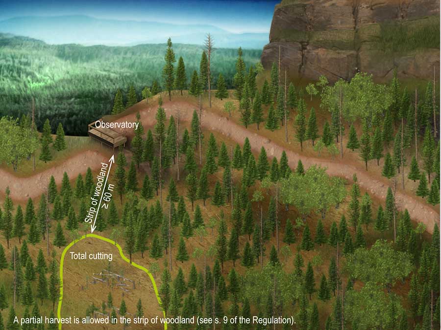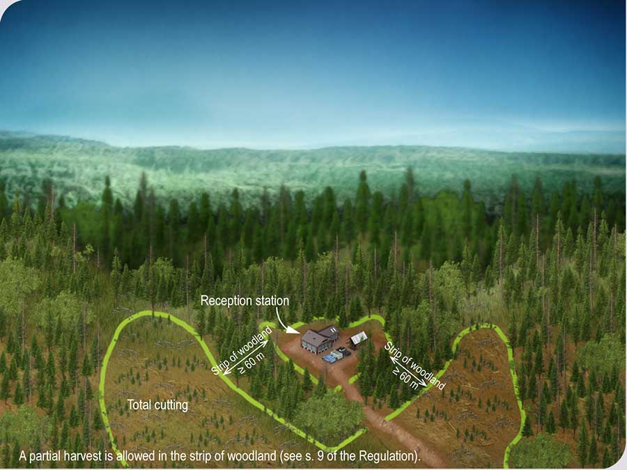 A strip of woodland at least 60 m in width must be preserved around the following places and territories: