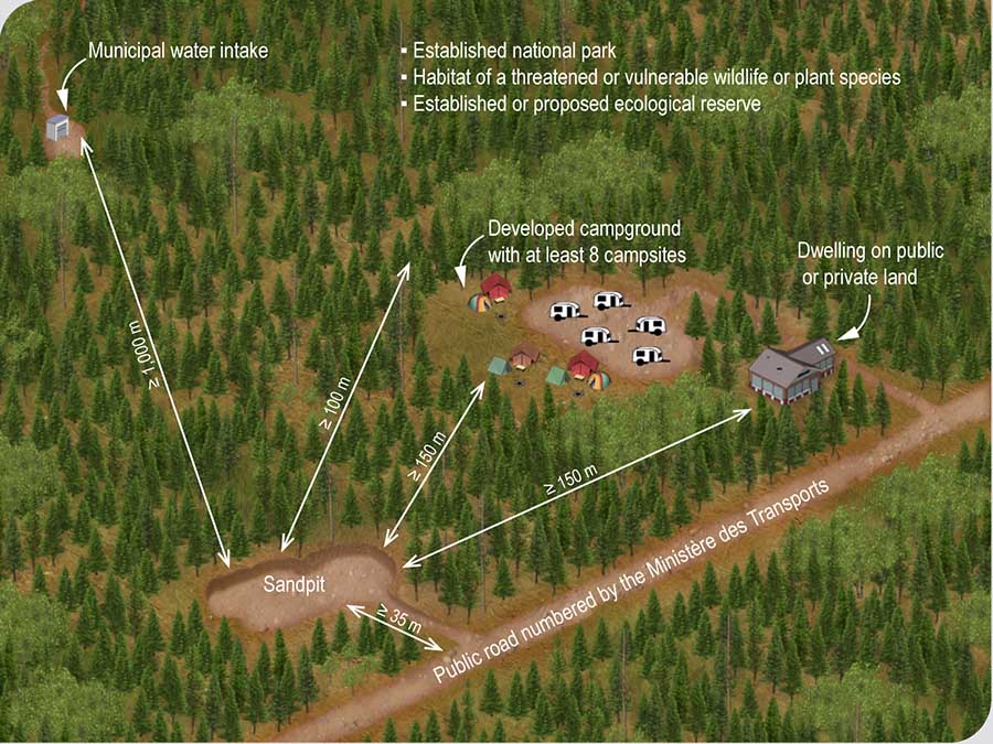 A sandpit may not be opened or operated within 35 m from a numbered public road appearing on the official map of the Ministère des Transports