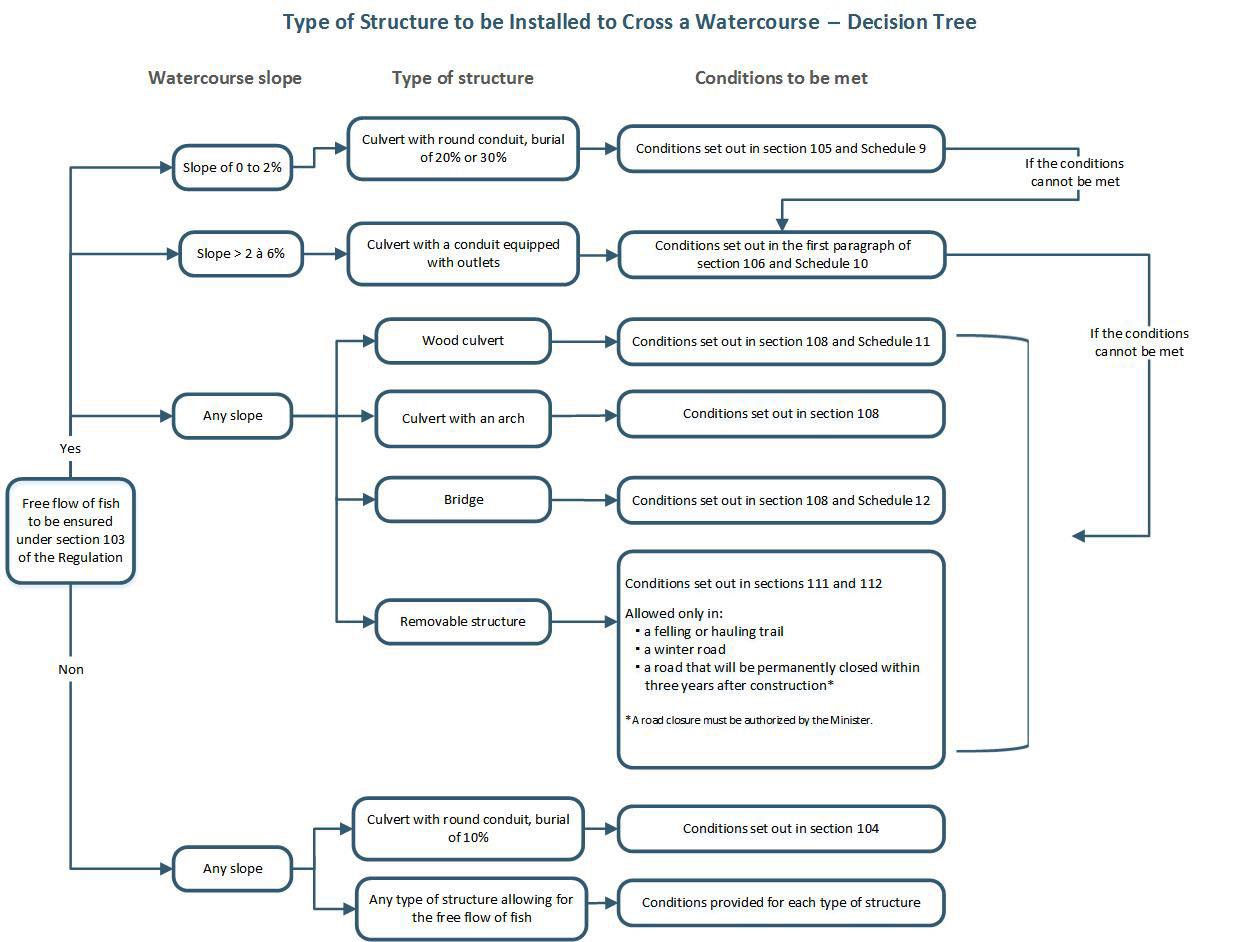 The decision tree below can be used to decide on the type of structure that must be installed to cross a watercourse.